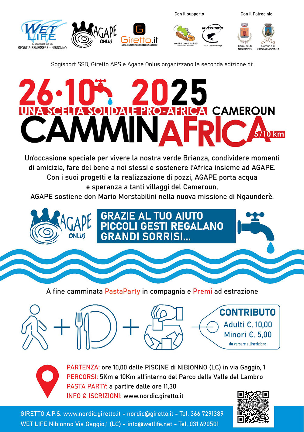 Agape, che in greco significa amore, è il nome dell’associazione con sede a Besana Brianza che regala al Camerun ogni anno pozzi d’acqua, impianti fotovoltaici ed impianti solari termici, grazie alle donazioni e all’operato dei suoi volontari. Un dono preziosissimo che garantisce la sopravvivenza ad interi villaggi.